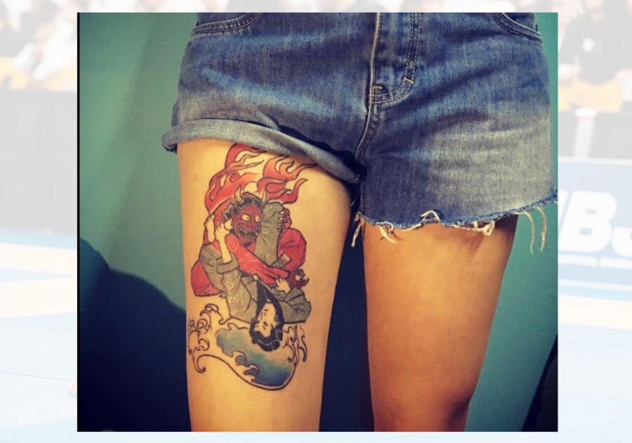 The legs and thighs offer plenty of space for expressive designs. From strong animal motifs, like gorillas or snakes, to Jiu-Jitsu tattoo symbols tied to movement, these placements are both powerful and personal. Many women prefer thigh tattoos for their mix of privacy and impact, while shin tattoos give off a bold, warrior vibe.