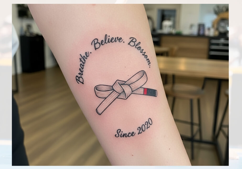 Sometimes, less really is more. A small Jiu Jitsu tattoo for women, like a triangle symbol, gi outline, or discreet belt knot, can say a lot without shouting. These minimalist Jiu Jitsu tattoo ideas for women are perfect if you want something subtle, stylish, and easy to show or hide depending on the occasion.